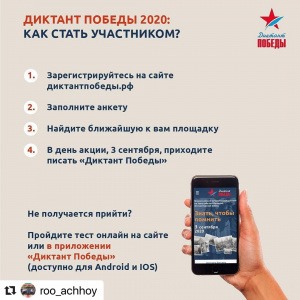 Дорогие друзья! В этом году патриотическая акция "Диктант Победы" пройдет 3 сентября. В ней примут участие люди из разных стран мира в память о героях, отстоявших мир на земле.