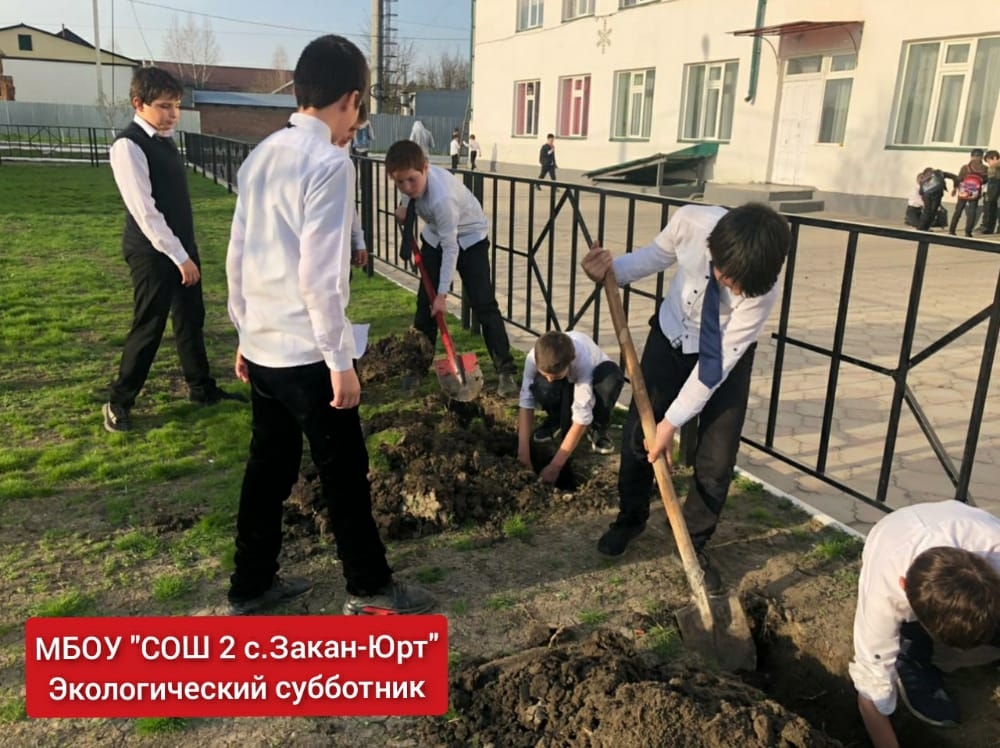 МБОУ "СОШ 2 с.Закан-Юрт" Учащиеся на уроке технологии, провели экологический субботник на территории школы