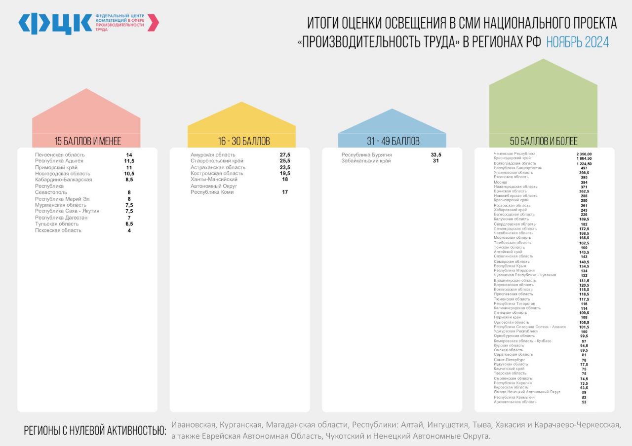 16.12.2024Чеченская Республика стала лидером в рейтинге Федерального центра компетенции (ФЦК) по освещению мероприятий национального проекта «Производительность труда».